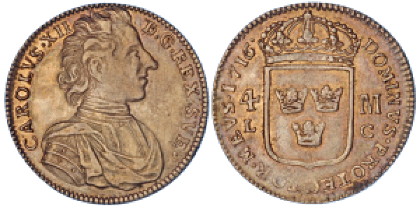 4 mark från 1716. Myntmästare: Lorentz Careelberg